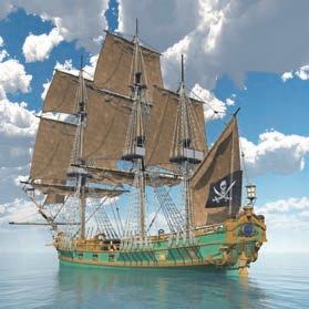 IZAN LA BANDERA PIRATA. ROMPEN LAS VELAS PARA FRENAR AL BARCO. DISPARAN A LA TRIPULACION PARA DESPEJAR LA CUBIERTA. SE LANZAN AL ABORDAJE Y LUCHAN CUERPO A CUERPO.
