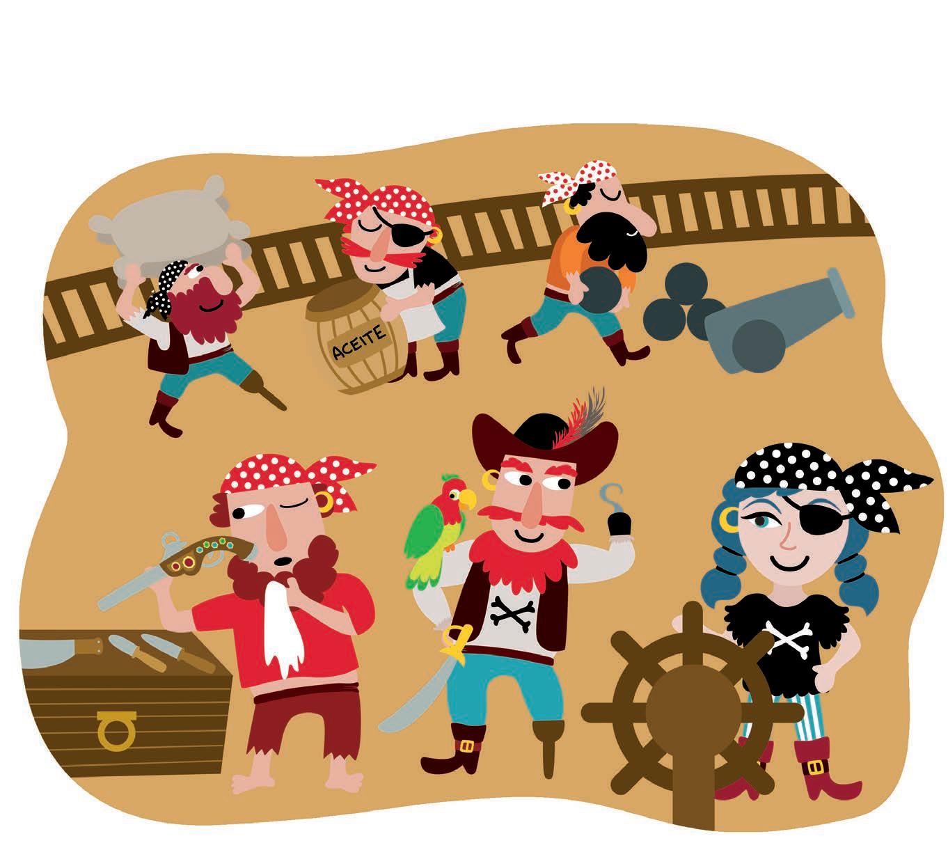 ◗ Observar las tareas que realizan los piratas, dramatizarlas y verbalizarlas.