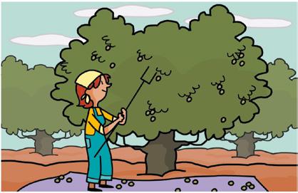 An olive goes through different phases to become olive oil. Each phase involves people doing a job. The phases are: