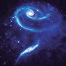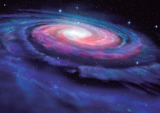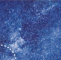 Completar la espiral con cera de color blanco para trazar la forma de la Vía Láctea. Puntear la espiral con ceras de color amarillo y azul y añadir dibujos de estrellas por todo el espacio.