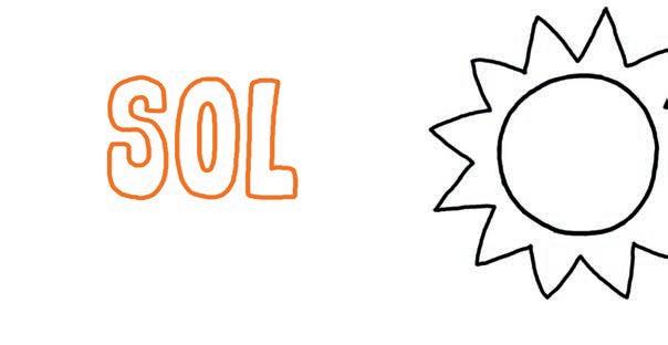 Observar y describir la fotografía del Sol. Completar las frases sobre el Sol colocando los adhesivos de las palabras adecuadas. Colorear la palabra «Sol» y completar el dibujo con los materiales y técnicas que cada uno desee.