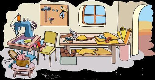 6. Hunain arregla sabates al seu obrador. Observa com és el seu taller i escriu les paraules on correspon.