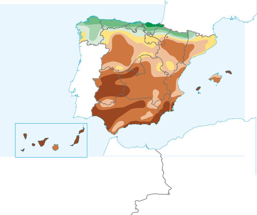 Espainian, atmosferaren egoeran eragina duten faktore eta elementuen aniztasunaren ondorioz, kontraste handiko klima-eremuak daude.