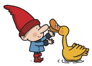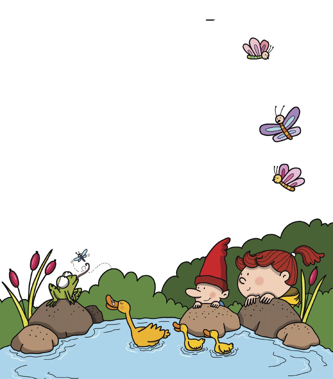 Bosco y Camila siguieron al conejo y al caracol, y Bosco curó a Maca con mucho cariño. Ella le dio las gracias y rápidamente se volvió a meter en el estanque con sus pequeños.