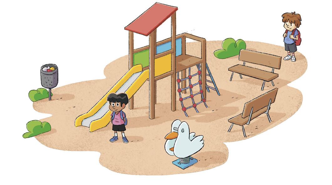 ¿Quién está más cerca y más lejos del tobogán? Rodea.