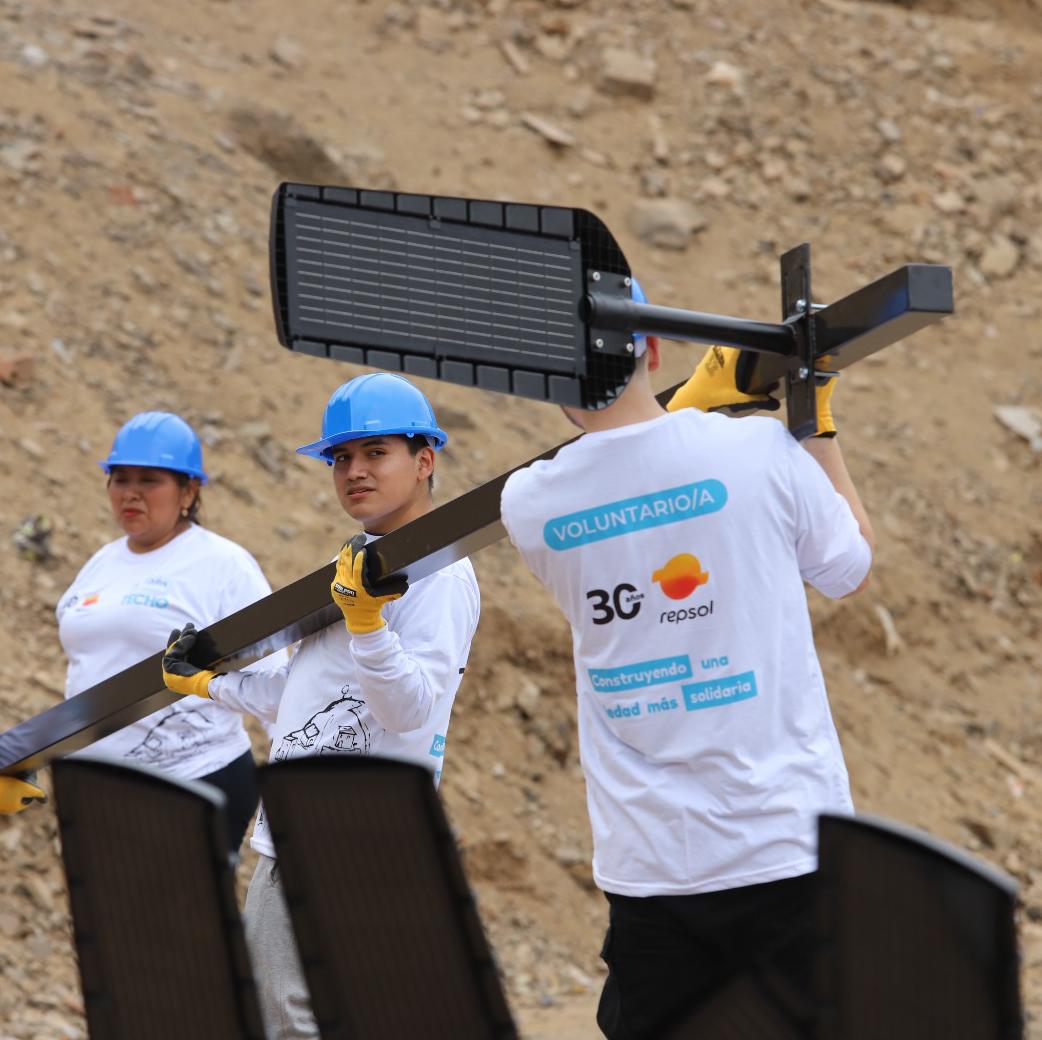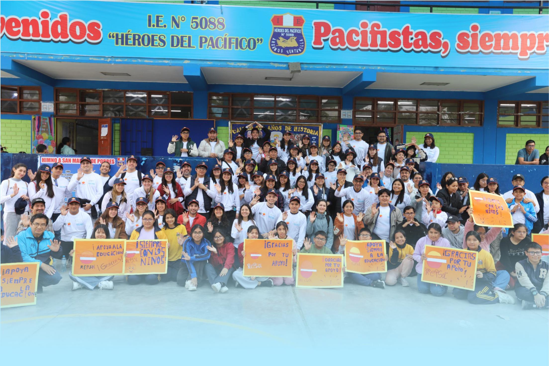 Más de 100 voluntario s se unieron este fin de semana para transformar la infraestructura de la I.E. 5088 Héroes del Pacífico, en Ventanilla, con la construcción de módulos educativos, mejoras en la losa deportiva e instalación de luminarias solares. La jornada movilizó a familias, jóvenes y vecinos del A.H. Angamos, quienes participaron activamente en las labores. La iniciativa fue impulsada por Repsol, en alianza con la ONG TECHO Perú, y contó con la participación de voluntarios y miembros de la comunidad.