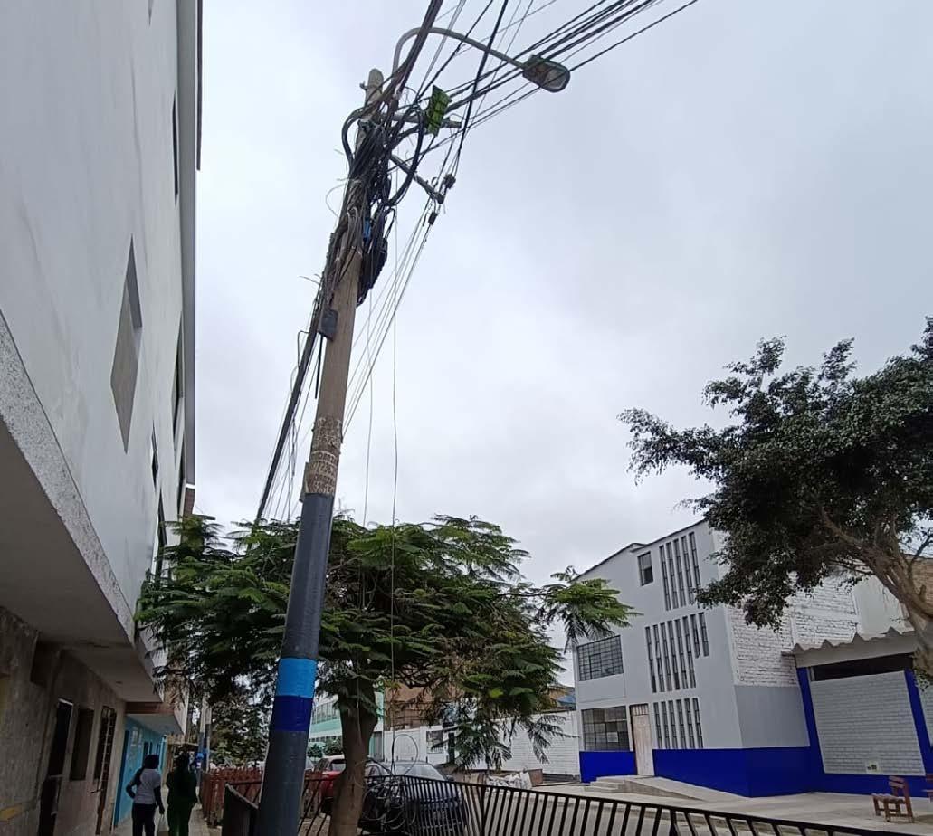 doblara y la vereda se partiera, dejando todo el conjunto al borde del colapso. Desde entonces, cada carro que pasa roza los cables, y cada vecino que cruza lo