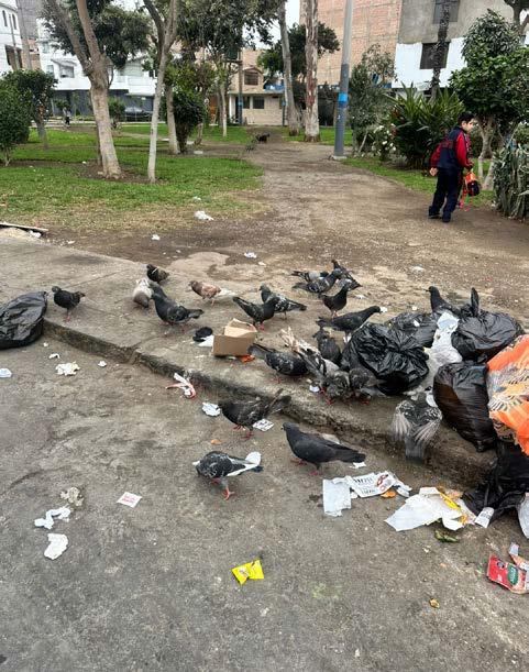 En la urbanización San Juan Macías, frente al Instituto Educativo Inicial “Medallita Milagrosa”, la cotidianidad de más de 200 niños de tres a cinco años se ve afectada por un enemigo inesperado: las palomas. Sus excrementos, mezclados con restos de basura que los vecinos arrojan muy cerca de la puerta principal del colegio, han generado un foco de con-
