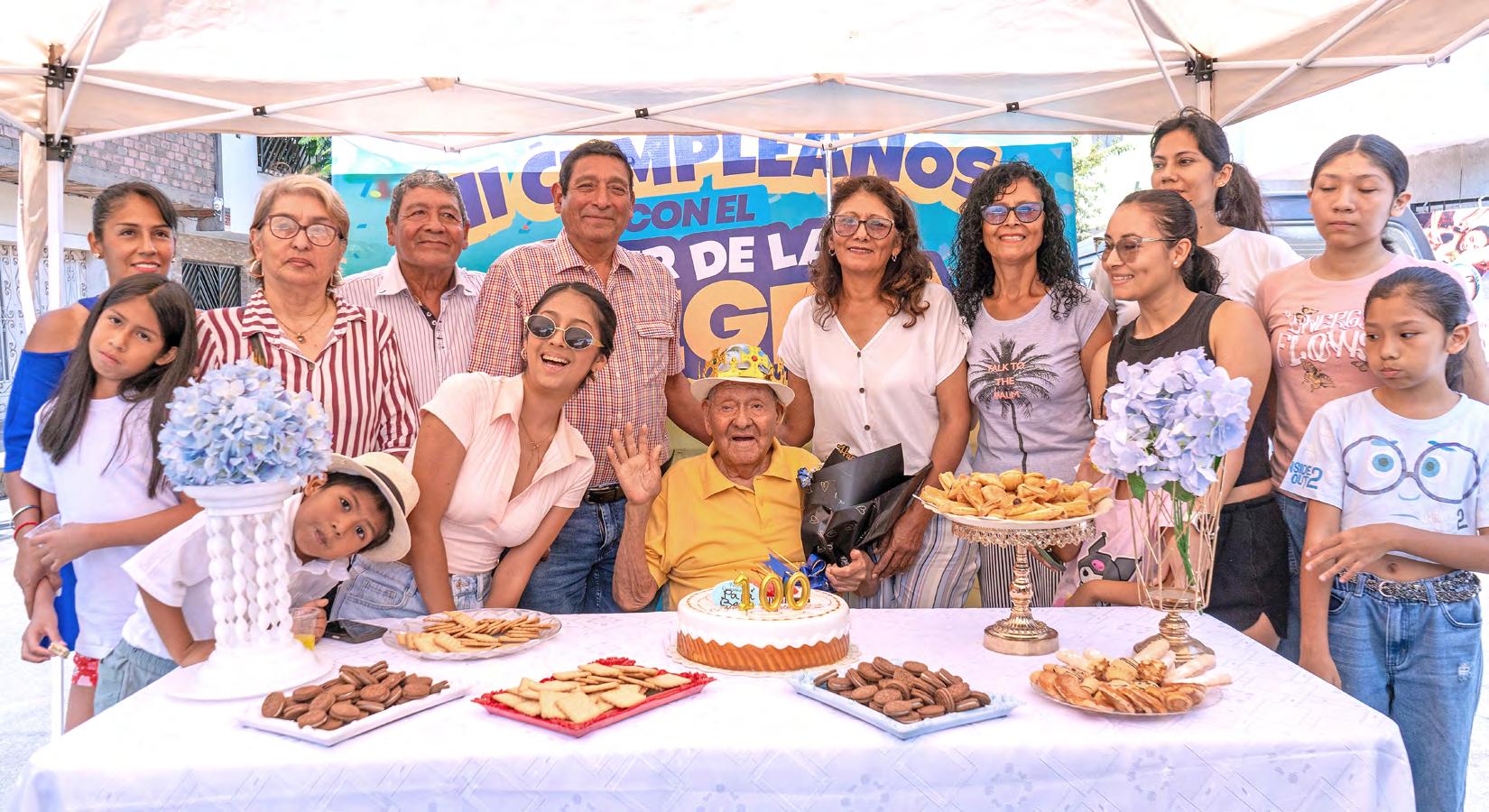 Don Benigno Gamboa Arana celebró un siglo de vida rodeado de su familia, vecinos y autoridades en la cuadra 4 de la avenida Julio C. Tello. Es fundador y referente histórico de Carmen de La Legua-Reynoso La Legua-Reynoso