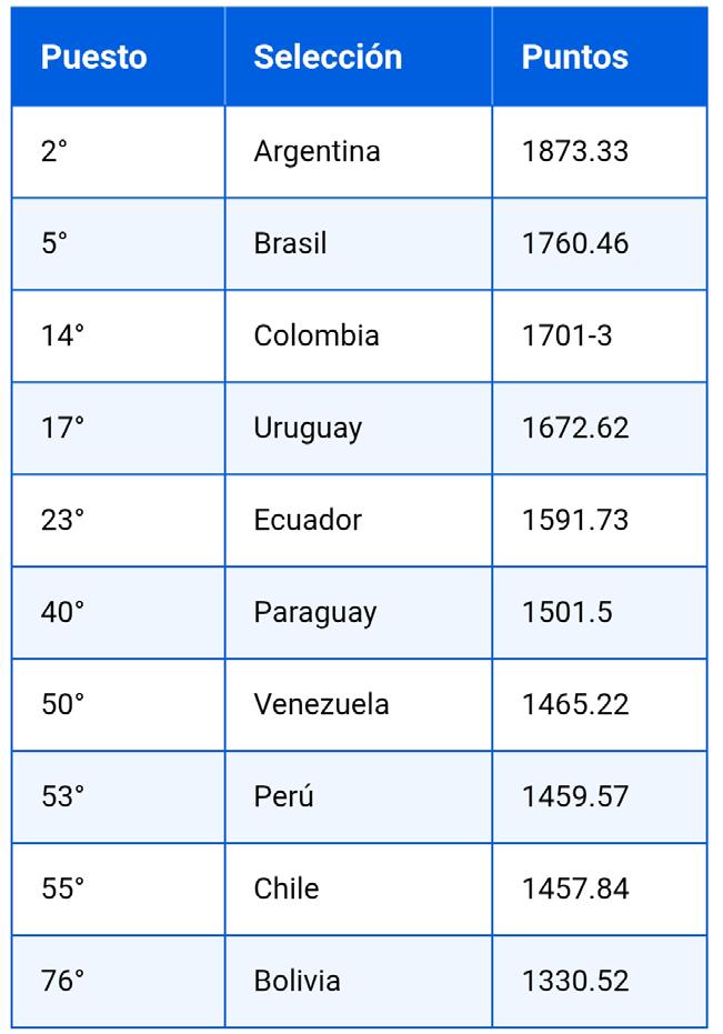 estanca. Argentina y Brasil dominan sin discusión, y la distancia con ellos ya no es solo futbolística, sino estruc-