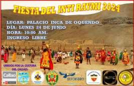 Descentralizada de Cultura del Callao. El evento será el lunes 24 a las 10:00 a.m., por lo que se requiere de la asistencia de los chalacos para conmemorar este importante festivo. Cabe recordar que al tratarse de una tradición inca, el Inti Raymi se mantiene como un
