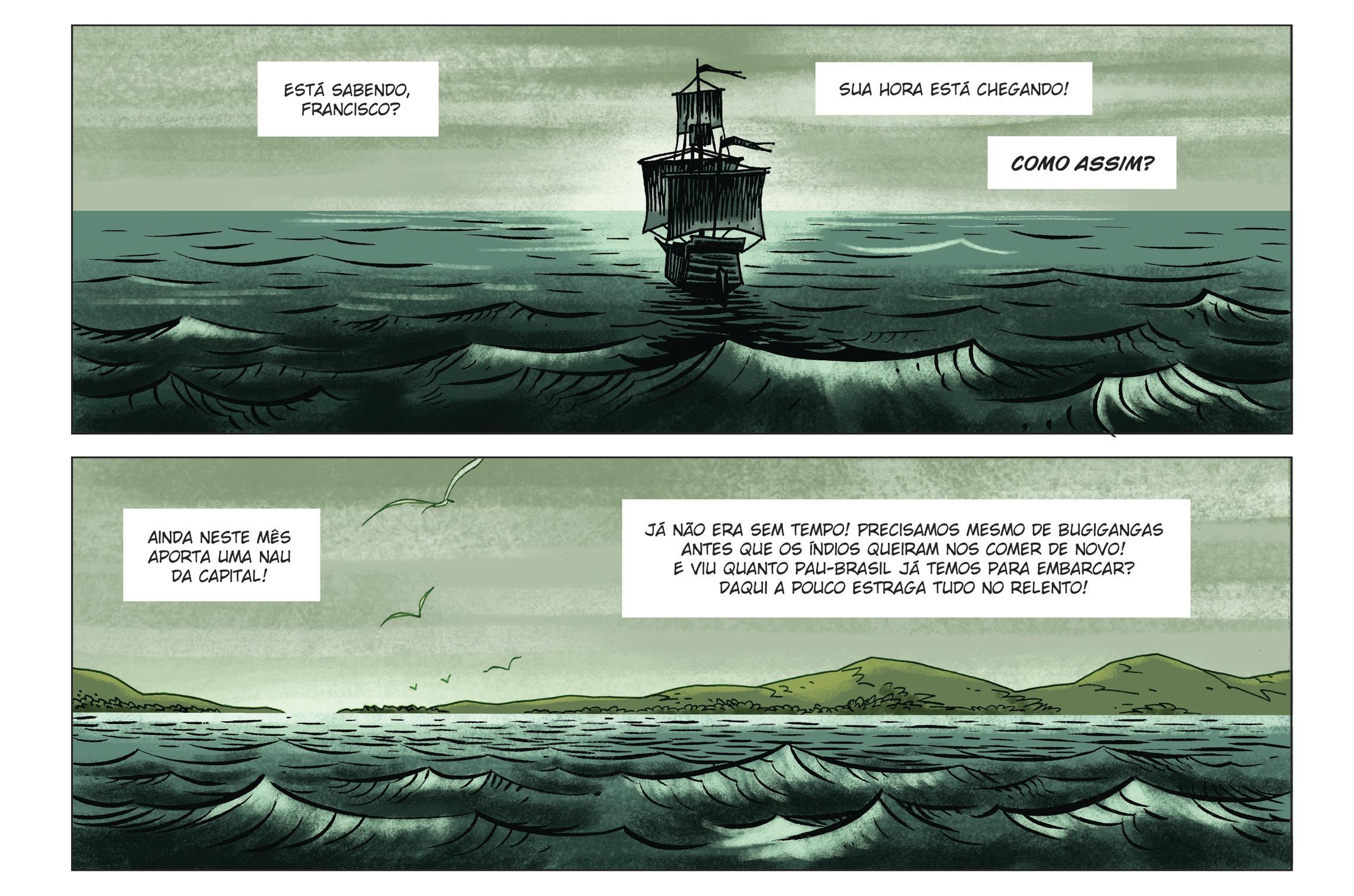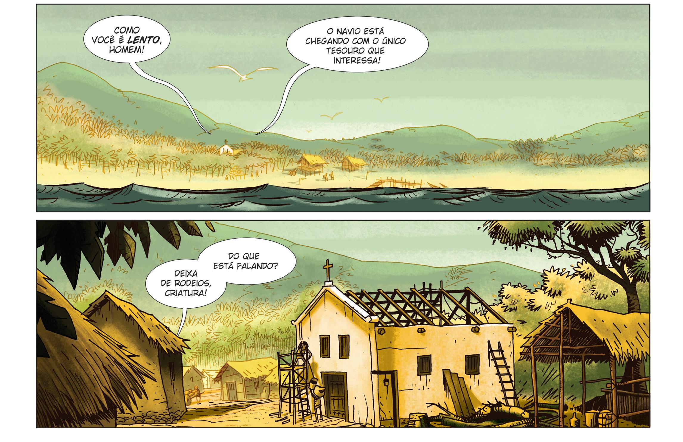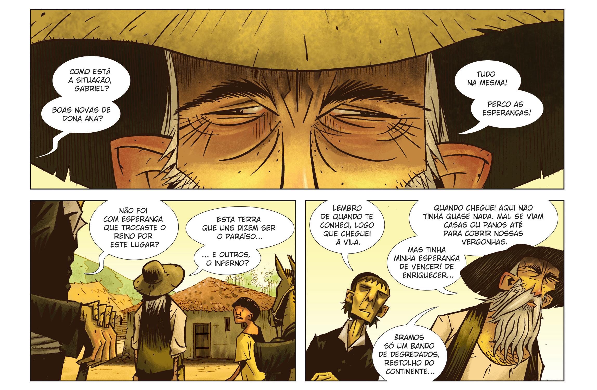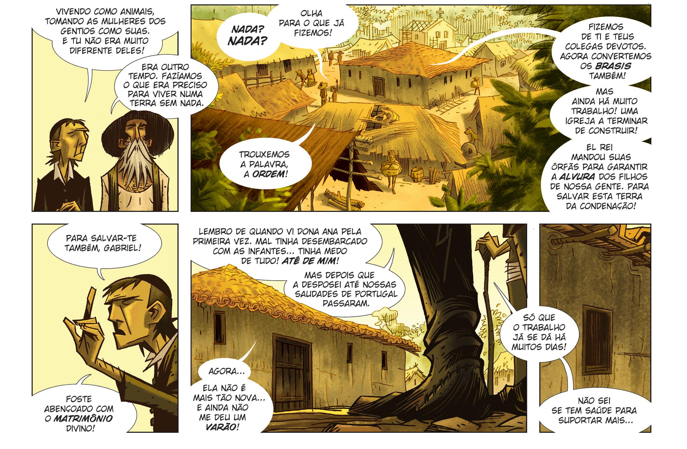 Viajar ao passado pela mão das crianças e enxergá-las, além dos clichês, nos dias de hoje: esse é o convite que nos faz José Aguiar em mais uma história em quadrinhos simplesmente espetacular! Um livro em que historiadores e um grande quadrinista fazem ciranda, e as imagens são, ao mesmo tempo, aliadas e uma fronteira desconhecida para as ciências sociais. E por que, leitor? Porque os quadrinhos, ainda pouco explorados, são capazes de provocar emoções, animar uma narrativa, inspirar sentimentos, explicar situações e “fazer a história do Brasil”. E, mais importante, desenhar é contar. E contar é fazer compreender. E para compreender, as técnicas da HQ são fundamentais. Em cada episódio, panoramas, zoom, cenografia dos detalhes, ponto de vista dos personagens e diálogos arrastam o leitor para um enredo fascinante e tão instigante quanto histórico. Aprendemos enquanto nos divertimos!