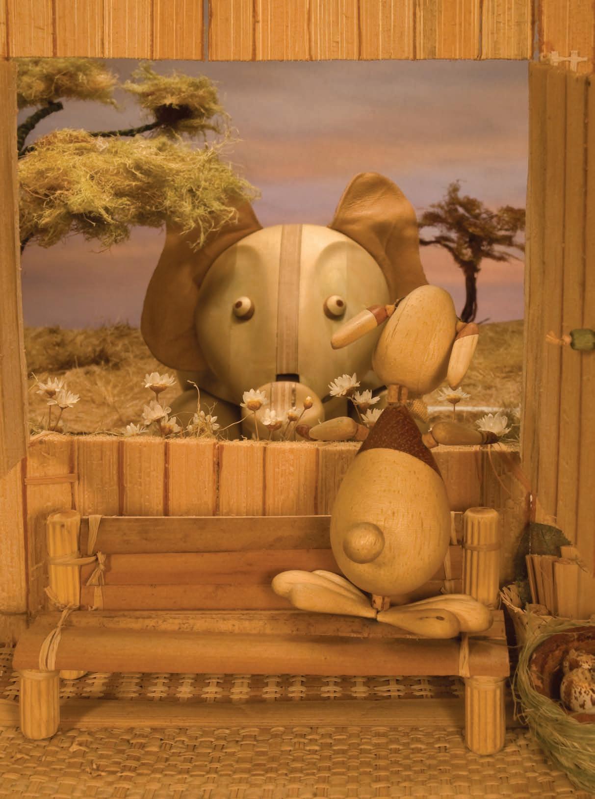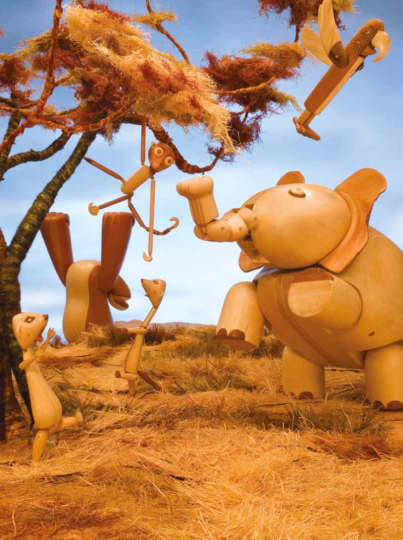 As ilustrações são cenas construídas pelo Giramundo, grupo de teatro de bonecos e animações. Desde sua criação, em 1970, os bonecos contam histórias nos palcos do Brasil e de outros países. E, agora, trazem para você contos do Brasil e de outros lugares do mundo, como O Elefante escravo do Coelho, que veio de Moçambique, na África. Pelo seu trabalho, o Giramundo já recebeu cerca de 36 premiações, entre elas o Prêmio Molière, a Medalha de Honra da Inconfidência, a Medalha Santos Dumont e a Ordem do Mérito Cultural.