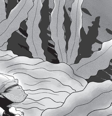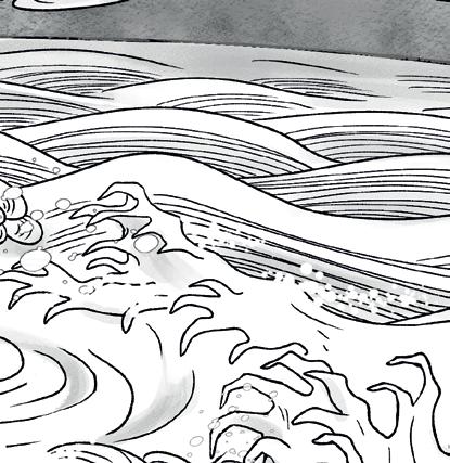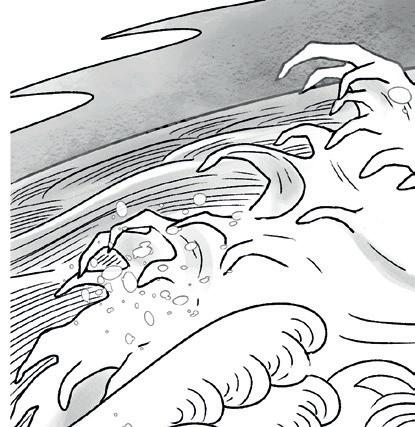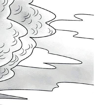 O avô se recosta, e Yūki instintivamente se inclina para a frente e vira a próxima página, revelando uma onda do tamanho de uma montanha, colorida com todos os tons de azul possíveis – ou pelo menos com todos