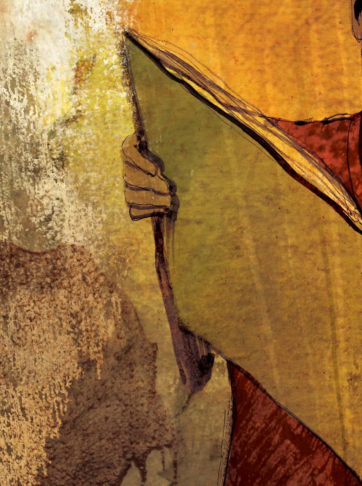 Bolinho de chuva. Bem de tardinha , a favela foi tomada por um grande arco-íris . Já era noite, e o menino nem se deu conta: estava em outro planeta.