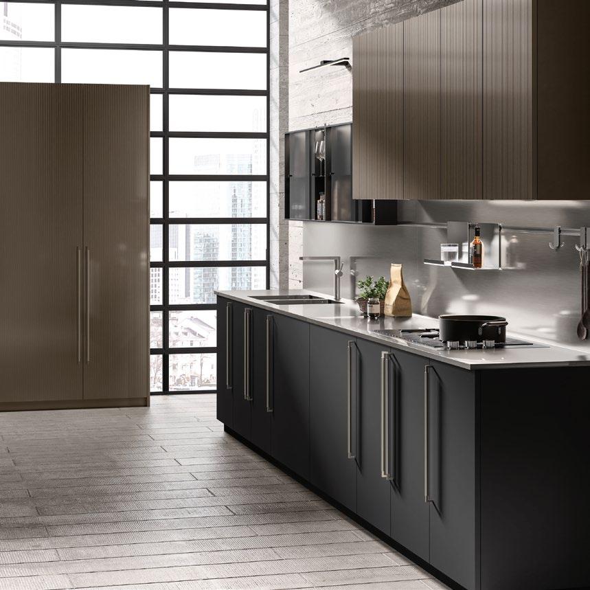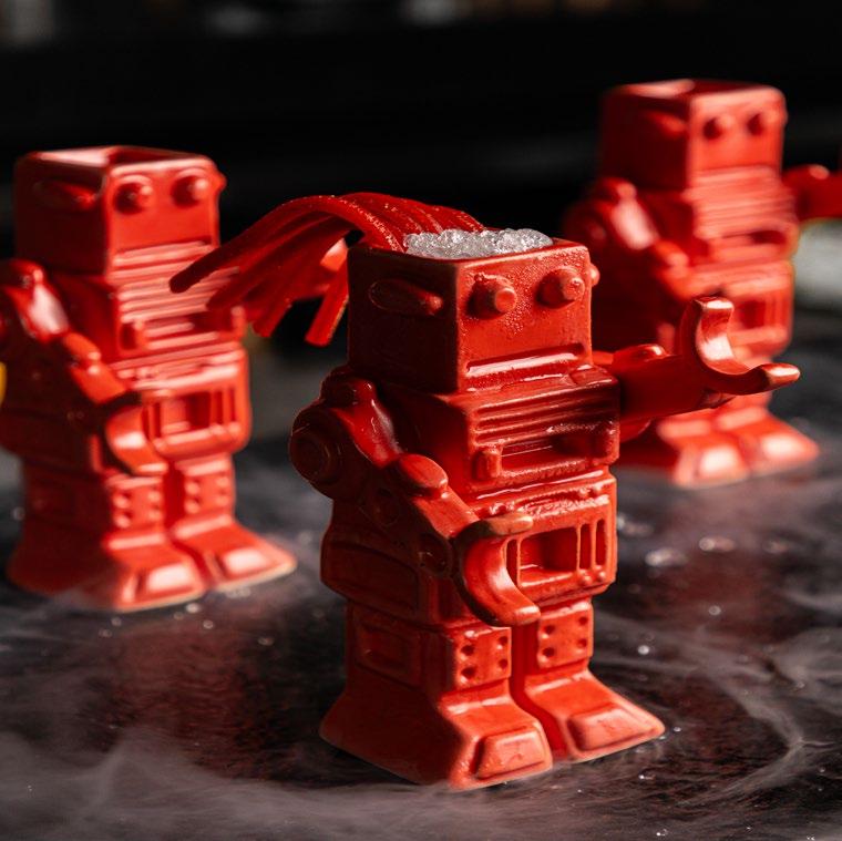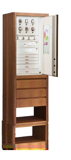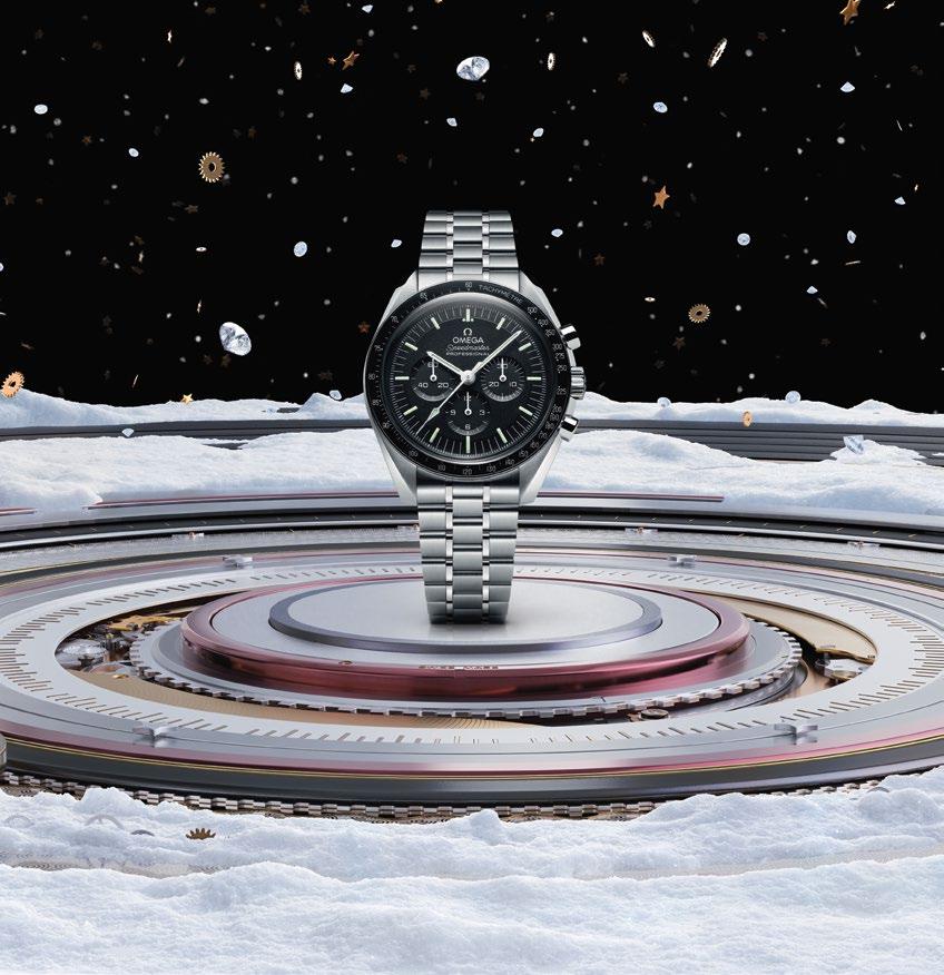 Las paredes de las estanterías con vetas de madera negra junto con las refinadas texturas de mármol dibujan un espacio cósmico ilimitado, donde las estructuras irregulares se organizan esporádicamente, aparentemente adhiriéndose a las reglas que rigen los movimientos celestes y formando piezas mecánicas gigantescas y precisas, según los diseñadores.