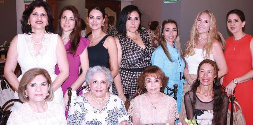 Karina Rukos Hadad, Carolina Kuri, Valentina González, Lina Daher, Sharon Rukos de Mondragón, Patricia Salomón Rangel y Lilia Rukos de Malacara. Sentadas: Lilia Esther Hadad, Rosalía Rangel de Salomón, Mayté Cerón de Rukos y Mayté Rukos Cerón