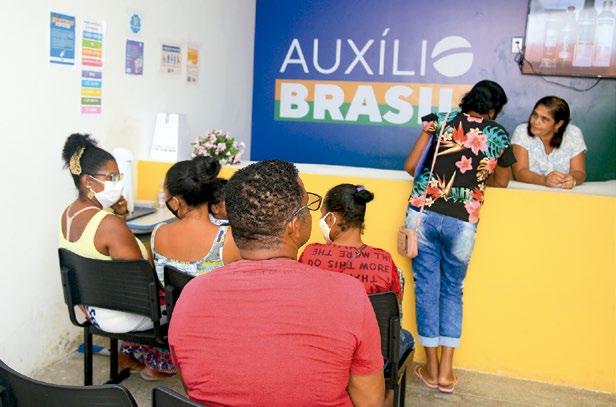 Personas en la secretaría de asistencia social para inscribirse en el programa Auxilio Brasil del Gobierno.