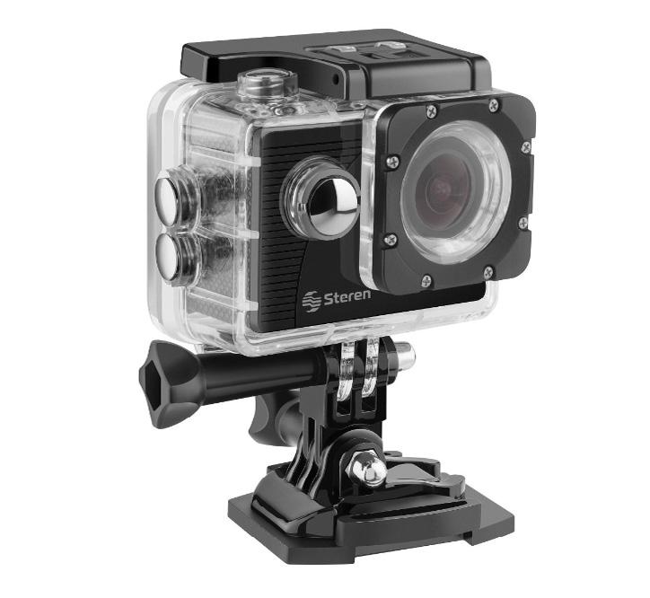 Si quieres documentar tu día a día, tus viajes, incluso tus entrenamientos, esta cámara, que pone a tu disposición Steren a un bajo costo, es ideal, pues te ofrece diferentes capturas de video y foto, así como la opción de grabar mientras buceas, haces surf o simplemente estás en una alberca.