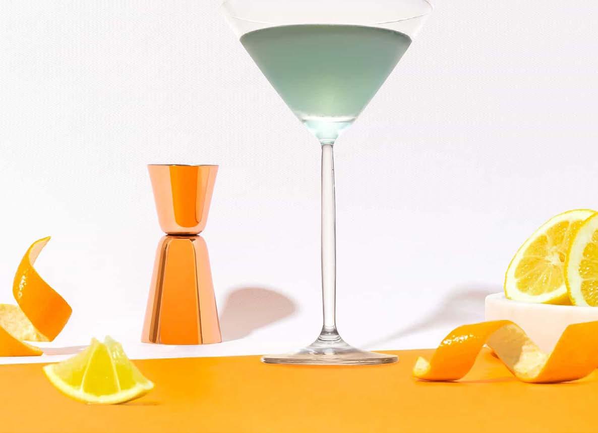 40 ml The Botanist 15 ml Cointreau L’Unique 15 ml Calvados 15 ml jugo de limón fresco 5 ml Crema de Violeta hielos