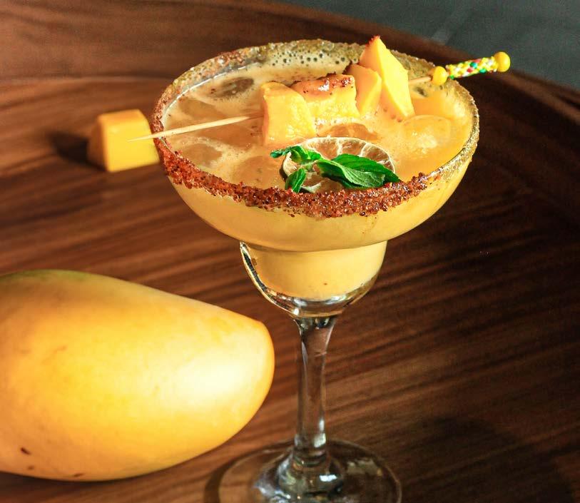 Vierte en un shaker los hielos, el tequila blanco, el licor de durazno, el triple seco, el jarabe de jengibre y la infusión de mango con limón. Mezcla todo por 20 segundos a intensidad moderada. Antes de servir escarcha un vaso con chamoy y chile en polvo. Si deseas hacerlo aún más llamativo se puede complementar con una sencilla brocheta de mango y una rodaja deshidratada. (Creado por Robin Rafael Gómez Canche)