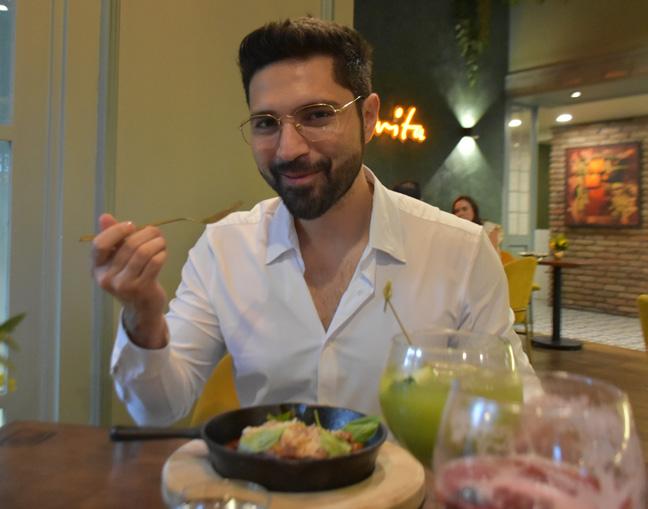 Desde que llegó al lugar, al cantautor le sorprendió el aroma del vestíbulo (floral y ligero) del restaurante con comida italiana que está hecha con base en fuego, y a cargo del chef Abel Hernández. Pizzas, carnes, pastas, todas pasan por un fuego diseñado para cada platillo y una cocción única que dan cercanía a una “grigliata” (lo que conocemos como una barbacoa) totalmente italiana. Casi se chupó los dedos el ex Académico, quien está grabando nueva música con la que nos sorprenderá a finales de año. “Pedí lasaña. Exquisita, cocción perfecta, sabor idóneo. La acompañé con un mocktail de pepino con lychee, muy refrescante. Me comí el 80% porque guardé mi 20% para el postre, que se me antojó desde que vi la carta. Probé el mousse de chocolate con aceite de oliva, que venía con unas rebanadas de pan, muy ricas; una combinación ideal que no empalaga, le da un balance apropiado”, concluyó.