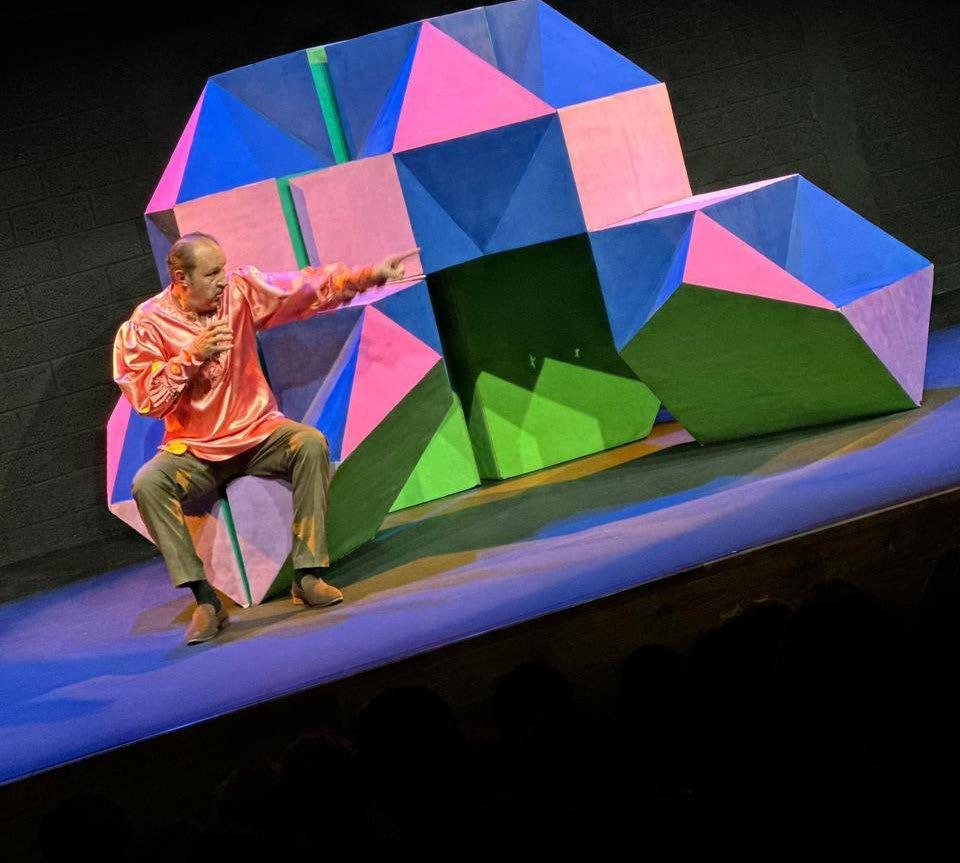 “Mi coprotagonista es la pieza de Sebastián, un elemento maravilloso transformable. Es un cubo de dos metros con el cual modifico el espacio. Me permite viajar en el tiempo, tanto a Florencia y a Milán de finales de 1400, como al México de hoy. Aproximadamente creo 16 figuras distintas, aunque Leonardo 4 tiene más de 60 posibilidades”.