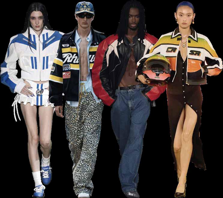 La chamarra de carreras deja de ser funcional para convertirse en símbolo: una vibra que combina ar chi v o , v el oc i dad y hu m o r estilí s tico U n r e v iv a l q ue co n q ui s t a a l as nuev a s ge ne ra ci o ne s y s e in s t a l a como el ícono visual de la temporada.
