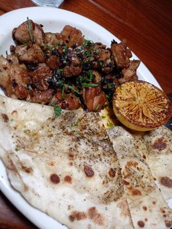 En Cueva, el menú se centra en cortes de carne premium como New York (con y sin hueso), rib eye, cowboy, asado de tira y las exquisitas costillas de cordero, todos cocinados al carbón para realzar su sabor. Además se incluyen opciones como picaña, churrasco y muslos de pollo, acompañados de guarniciones como cebollas caramelizadas, chiles tatemados y tortillas de maíz, además de pan pita hecho en casa. Los cortes se sirven fileteados en charolas al centro, fomentando el concepto de compartir.