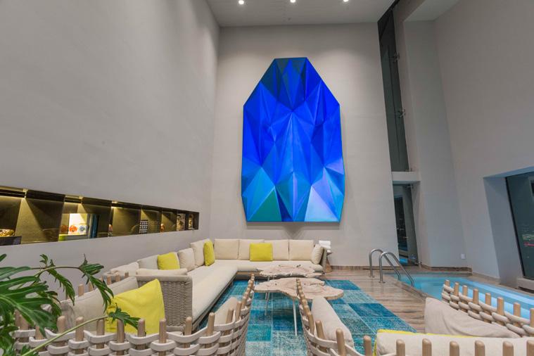 Con texturas, materiales y formas del paisaje local, además de recubrimientos y detalles en madera y piedra volcánica, la propiedad imprime la estética de la isla en sus espacios, capturando su singularidad a través de la interpretación de la naturaleza.