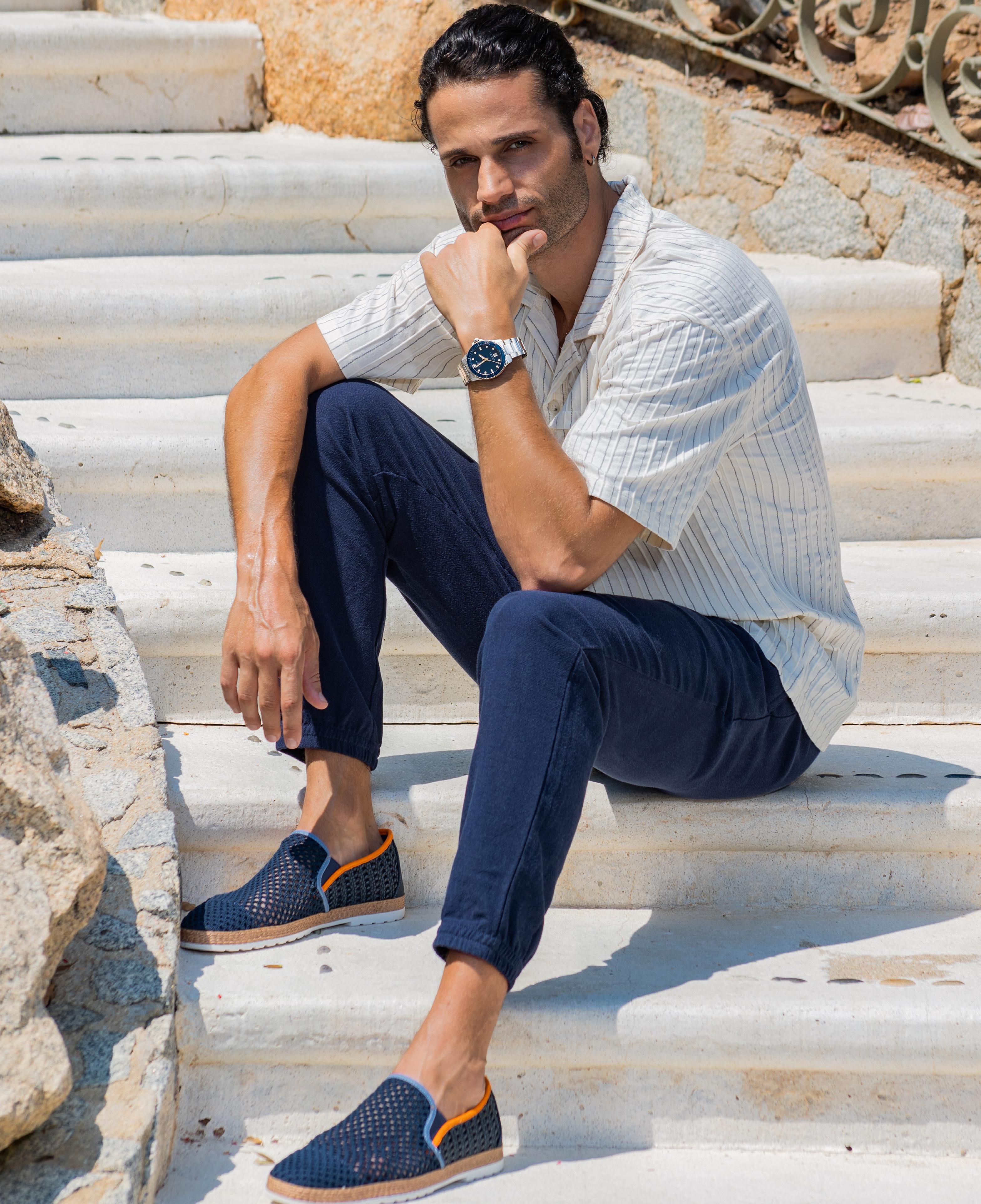 Soy muy moldeable, me ajusto al lugar en el que estoy: si es en la ciudad, me gusta arreglarme, jugar con la moda, pero si voy a la playa, me agrada usar bañador y estar descalzo.