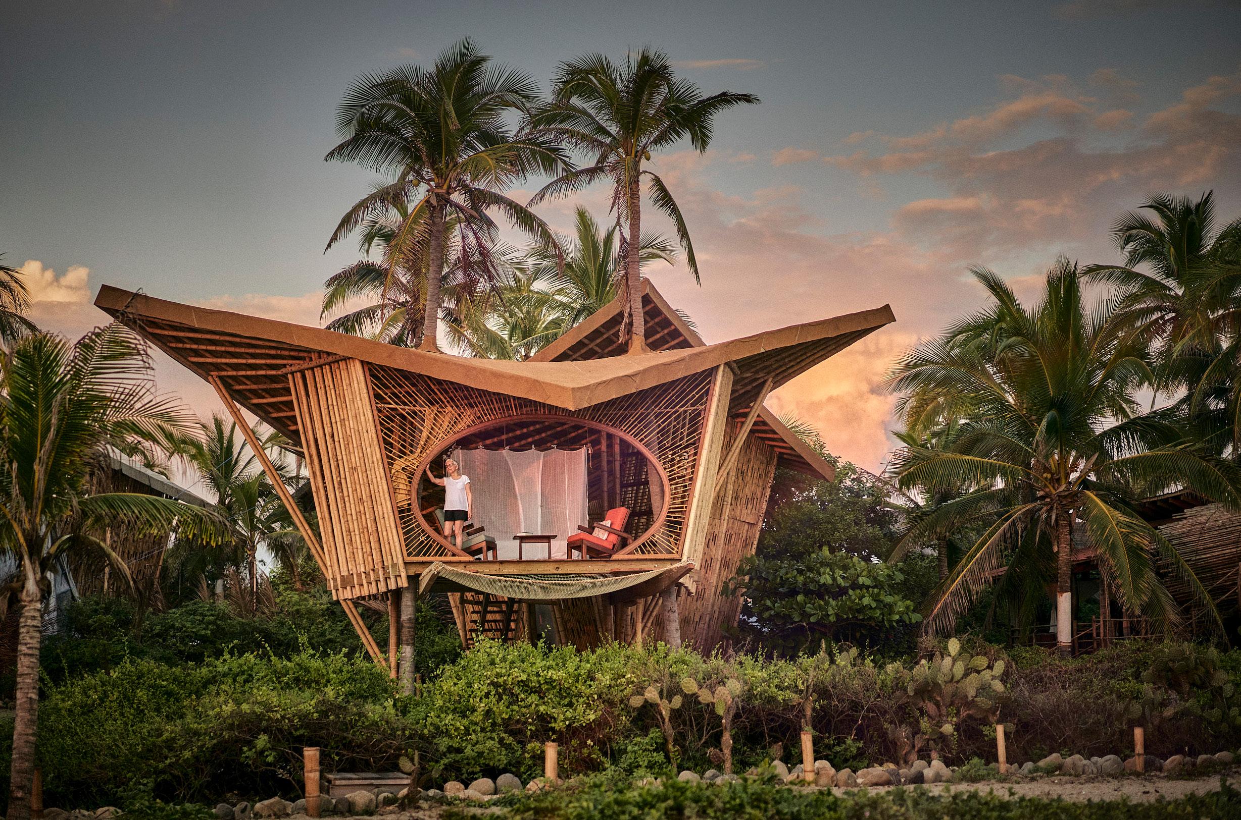 Este resort ofrece lujosas casas de árbol hechas de bambú, rodeadas de exuberantes palmeras, donde los huéspedes disfrutarán de la belleza natural