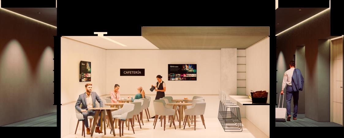 BLOQUE DE SERVICIOS COMPLEMENTARIOS, CONCIERNGE BODEGA GENERAL PARA ABASTECIMIENTO Y SERVICIO DE CUARTOS BLOQUE DE SERVICIOS COMPLEMENTARIOS, CAFETERÍA PERÍMETRO EXTERIOR DE RECÁMARAS PARA APROVECHAR ILUMINACIÓN NATURAL Y VISTAS ZONIFICACIÓN N