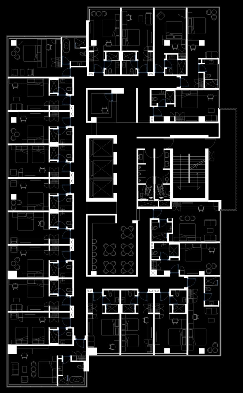 SUITE: MÁS ESPACIO, MEJORES VISTAS JR. SUITE: MÁS ESPACIO HABITACIÓN ESTANDAR HABITACIÓN DOBLE CAFETERÍA CONCIERGE LOBBY BODEGA DE BLANCOS Y GENERAL ELEVADORES BAÑOS COMUNES ESCALERA DE EMERGENCIA CUARTO DE MÁQUINAS 1 2 3 4 5 6 7 8 9 10 11 12 PROPUESTA ARQUITECTÓNICA 21 HABITACIONES