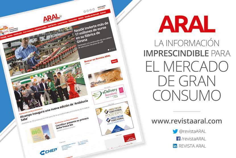 Resultados: Mercadona continúa con su imparable progresión 38 Es noticia: Distribución ................................................................................................................ 42 Industria 43 Nombres propios 44 EN PRIMERA PERSONA Carlos Aguirregomezcorta, Director de Alimentación Moderna de Coca-Cola Europacific Partner 46 ESTUDIOS DE MERCADO Además... Logística: Paletería exprés 94 Novedades 100 Food Service 104 PORTADA Nº 1.693 Revista fundadora del Club Dirigentes de la Industria Distribución INFORMANDO DESDE 1967 www.revistaaral.com Nuevos hábitos en España CONSUMIDOR Productos del Mar (fresco congelado) Platos preparados refrigerados y congelados Salsas, especias, condimentos y vinagres Elaborados cárnicos de pavo y pollo ESTUDIOS DE MERCADO Carlos Aguirregomezcorta Director de Alimentación Moderna de CCEP EN PRIMERA PERSONA El responsable no está, pero se le espera MARCAS /revistaARAL 7 IA, SOSTENIBILIDAD Y PRODUCCIÓN RESPONSABLE GANAN ENTEROS LO VISTO EN ALIMENTARIA & HOSTELCO 2024 DE LA ‘A’ A LA ‘Z’ Productos del Mar (fresco y congelado) Platos preparados refrigerados y congelados 64 Salsas, especias, condimentos y vinagres 76 Elaborados cárnicos de pavo y pollo 52 86