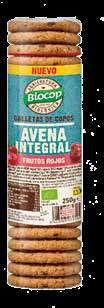 Biocop lanza una nueva variedad de galletas elaboradas con copos de avena integral y frutos rojos. Con este producto, la compañía amplía su gama de galletas ecológicas. La nueva propuesta destaca por su combinación de ingredientes: copos de avena integral, arándanos rojos y aroma natural de frambuesa. Se trata de una receta sencilla, con una textura rústica y un sabor suave pero con carácter, que se suma al amplio y apreciado portfolio de galletería de Biocop.
