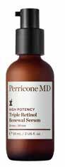 El nuevo High Potency Triple Retinol Renewal Serum de Perricone MD incorpora tres retinoles en una sola fórmula: retinol puro encapsulado (la forma más activa de retinol, encapsulada para evitar reacciones en la piel y asegurar que el activo se entrega a las células poco a poco), éster de retinol (una forma liposoluble de retinol compatible con la piel que suma actividad antiedad y evita irritaciones) y retinART (molécula cuya capacidad para producir colágeno llega a ser incluso superior a la del retinol).