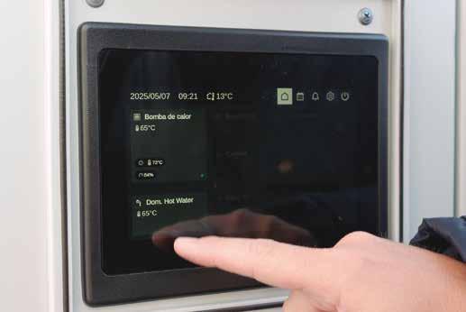 La interfaz de control facilita la monitorización energética y la optimización del rendimiento térmico en todo el edificio.