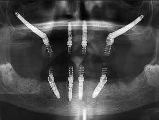 Imágenes 5 y 6 de la página 25, correspondientes al caso de Implantología titulado “Rehabilitación de maxilar atrófico con técnica All-on-4® Hybrid. Follow-up 6 años”