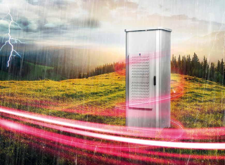 El robusto armario para exteriores combinado con el sistema inteligente de refrigeración Blue e+