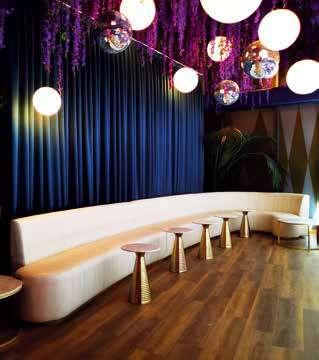 Animales, flora, fauna y una profunda conexión con la tierra completan este círculo de fantasía que rinde homenaje a las culturas americanas, y a la esencia del universo, personas y objetos14.- Uno de los salones privados dispone incluso un oasis de vegetación de color lila, que se descuelga del cielo entre luces y bolas de espejos.