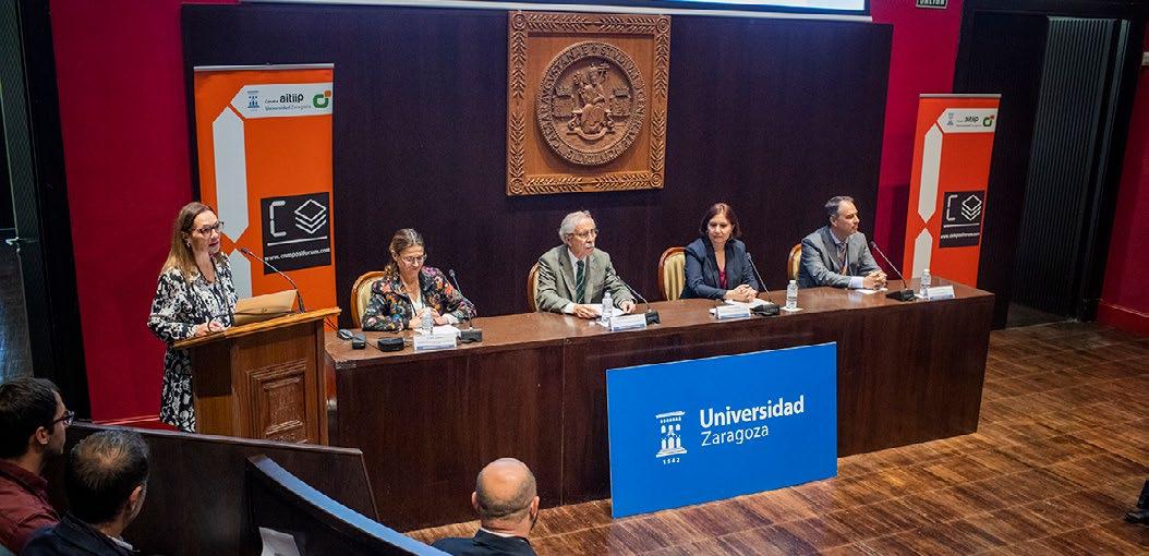 Un futuro más sostenible gracias al reciclaje de los composites se debatió en Zaragoza durante la III edición de Composiforum, un foro internacional que reunió a científicos y expertos de centros de investigación, universidades y compañías punteras de varios países europeos. Desde la estructura de un avión, de aerogeneradores, la fabricación de coches o solo de una simple raqueta de pádel o un esquí. Todo pasa por la utilización de los materiales compuestos, basados en plásticos. Así que la sostenibilidad y reciclaje de estos materiales es uno de los aspectos que más preocupa a la comunidad científica de este sector. Así ha quedado patente durante la jornada técnica que ha organizado la Cáte dra Aitiip de la Universidad de Zaragoza, en la que se ha abordado lo último en reciclaje, recuperación y reutilización de materiales composites, y se han presentado las líneas de investigación en activo más revolucionarias. Berta Gonzalvo, directora de investigación del Centro Tecnológico Aitiip, ha declarado: “Los materiales compuestos son ligeros, así que nos permiten reducir el consumo de energía en las diferentes industrias como la auto moción o la aeronáutica, pero ahora estamos investigando que todos esos materiales tengan una segunda vida, que esos materiales no se desechen y podamos separar las fibras de las resinas para volver a convertir esos mate riales en otros productos. El nuevo compromiso de la comunidad científica radica ahora en que los nuevos materiales que se generen tendrán que ser intrínsecamente reciclables”.