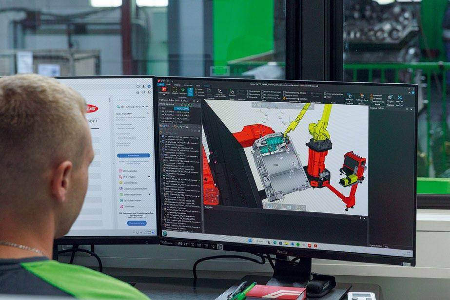 “Nuestro sistema suelda de forma constante en el centro del cordón”, explica Stieglitz. “Para ello, está equipado con un buscador automático de cordones de soldadura, que funciona de la siguiente manera: el robot se desplaza con el hilo de soldadura contra el componente, recuerda el punto y guarda sus coordenadas. Una vez medidos y registrados todos los puntos necesarios en las coordenadas X, Y y Z, se comparan con el componente