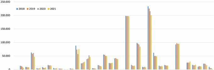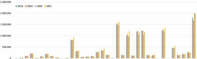 2011 920.000 -10,4 2012 671.000 -27 2013 757.000 +13 2014 831.000 +10 2015 940.000 +15 2016 960.000 +2,3 2017 920.000 -3,5 2018 990.000 +8 2019 1.055.000 +7 2020 960.000 -9 2021 1.185.000 23,5