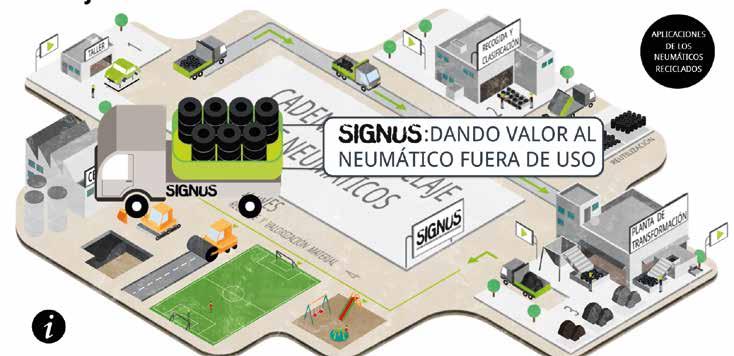 Al comprar un neumático, se paga una tasa de gestión para cuando este llega al final de su vida útil, es el Ecovalor. Signus destina dicha cantidad para una compleja gestión ambiental, que lo convierte en materiales valiosos para distintas aplicaciones, evitando que termine en vertederos.