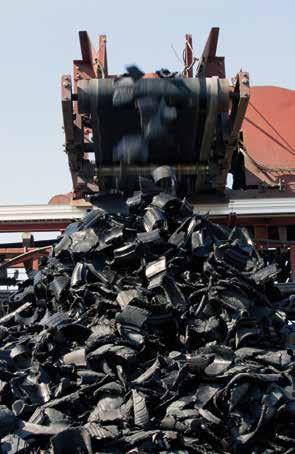 del caucho, se destina a cementaras, aunque es un elemento útil para aislamiento, y el caucho, en función del tamaño de los granos que se fabriquen (bajo el nombre comercial Elastire) se destina para diferentes usos, tales como carreteras, suelos de seguridad o rellenos de césped artificial y bases elásticas.
