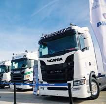 R.Peinado ha organizado este homenaje a estas tres empresas de la provincia de Ciudad Real, que hace décadas compraron su primer Scania y hoy siguen confiando en la marca y en sus novedades. Todos ellos han adquirido vehículos Scania Super, una nue va gama de motores de la marca que logran un 8% de ahorro de combustible, gracias a la nueva cadena cinemática, nuevas cajas de cambios Opticruise y ejes propulsores más eficientes. De hecho, este evento de reconocimiento también sirvió de acto de entrega de llaves de esos nuevos Scania Super que han adquiri do las tres empresas homenajeadas. “Estos clientes son un caso especial. Al frente de es tas empresas está la segunda y tercera generación de transportistas y ellos siguen confiando en Scania co mo marca predominante, o única marca, en sus flo