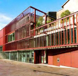 un vestíbulo de doble altura que articula las distintas zonas del centro. La intervención se ha desarrollado en un entorno patrimonial de gran valor, dentro de las antiguas murallas de Vauban.