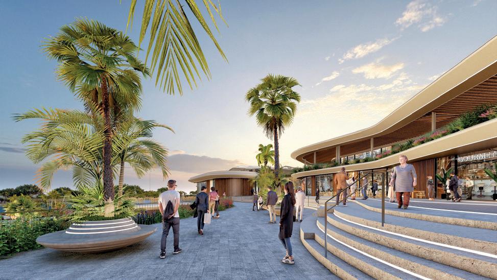 y amplias vistas abiertas, consolidando una transición amable entre el interior aeroportuario y el paisaje insular. El tratamiento de cubiertas y fachadas refuerza la relación con el entorno y la identidad del conjunto como un único volumen arquitectónico. En el interior, el proyecto mantiene esta línea conceptual mediante el uso de materiales cálidos, elementos vegetales y aperturas estratégicas.