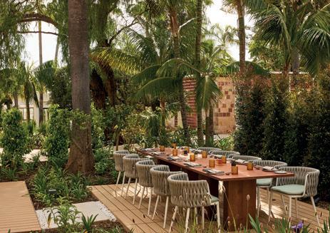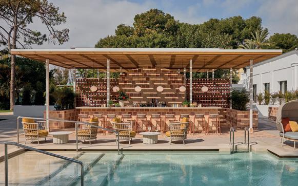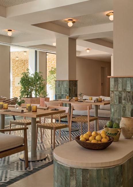 los refrescantes tonos turquesa naturales del agua. Las plataformas a distintos niveles se integran de forma orgánica, dando lugar a una atmósfera vibrante y colorida, con un aire vintage y chic que invita al relax. En una de estas plataformas, El Costa Club Pool Bar cobra protagonismo con sus cerámicas y celosías de terracota y una pérgola que filtra la luz, creando un juego de sombras que evoca la esencia de un auténtico refugio mediterráneo.